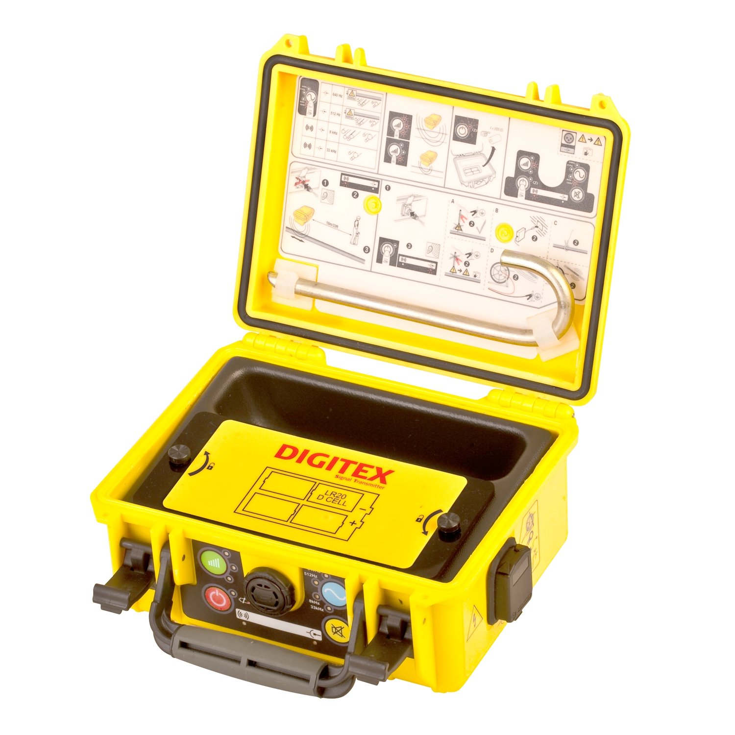 Корпус генератора Digitex 100t выполнен в виде компактного, герметично закрывающегося кейса из высокопрочного пластика, с отсеком для необходимых аксессуаров. В отличие от ранней модификации прибора, у данной модели все органы управления и герметизируемые разъемы размещены не внутри, а снаружи корпуса, поэтому при выполнении работ "кейс" остается закрытым. Благодаря этому трассоискатель с генератором можно использовать в сложных полевых условиях.
